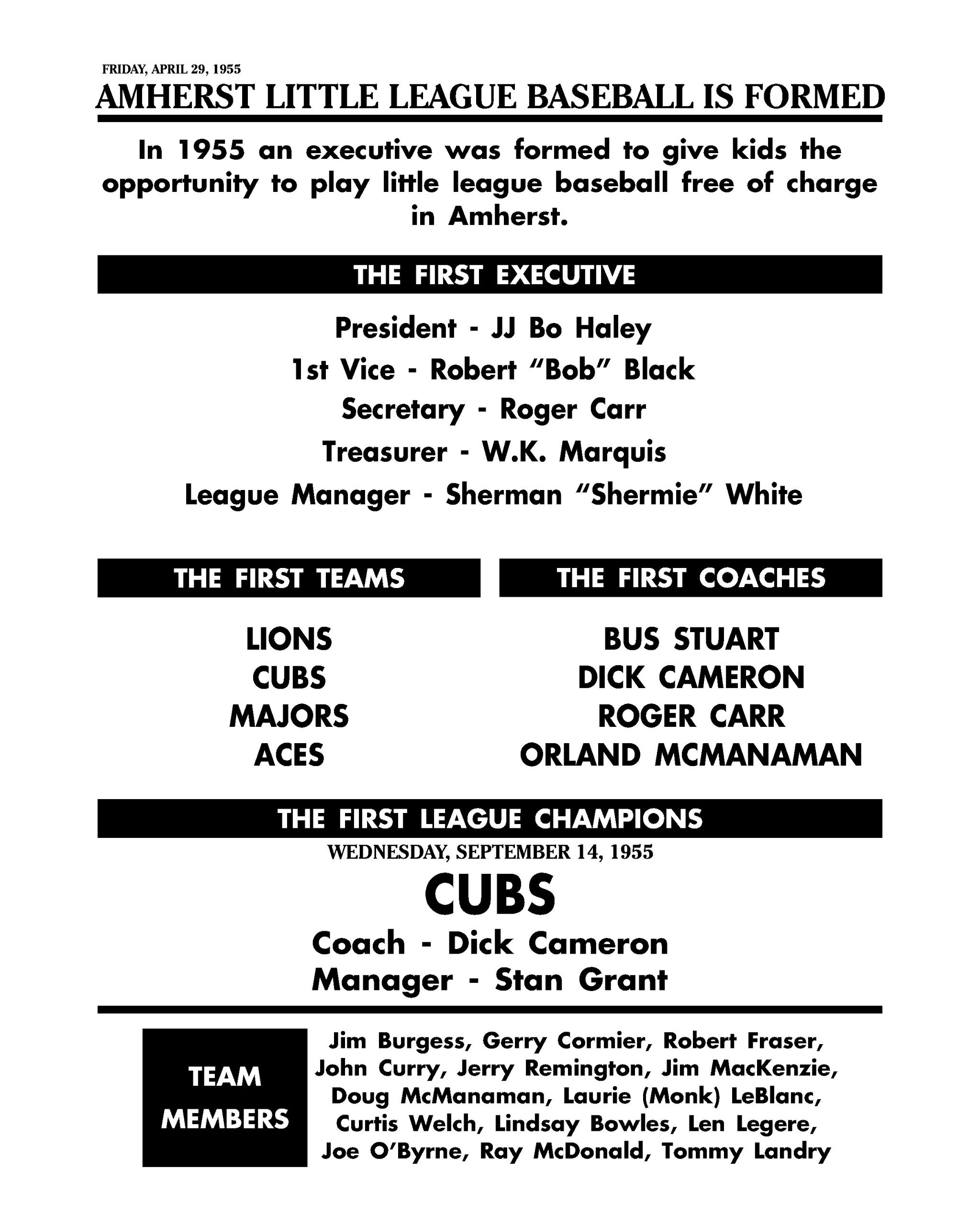 The most amazing part as that throughout all those years and the growth, the Amherst Little League has remained a free program. The only one if its kind in Nova Scotia and potentially all of Canada. The only way we have achieved this is through the continued support of our Sponsors and many volunteers.